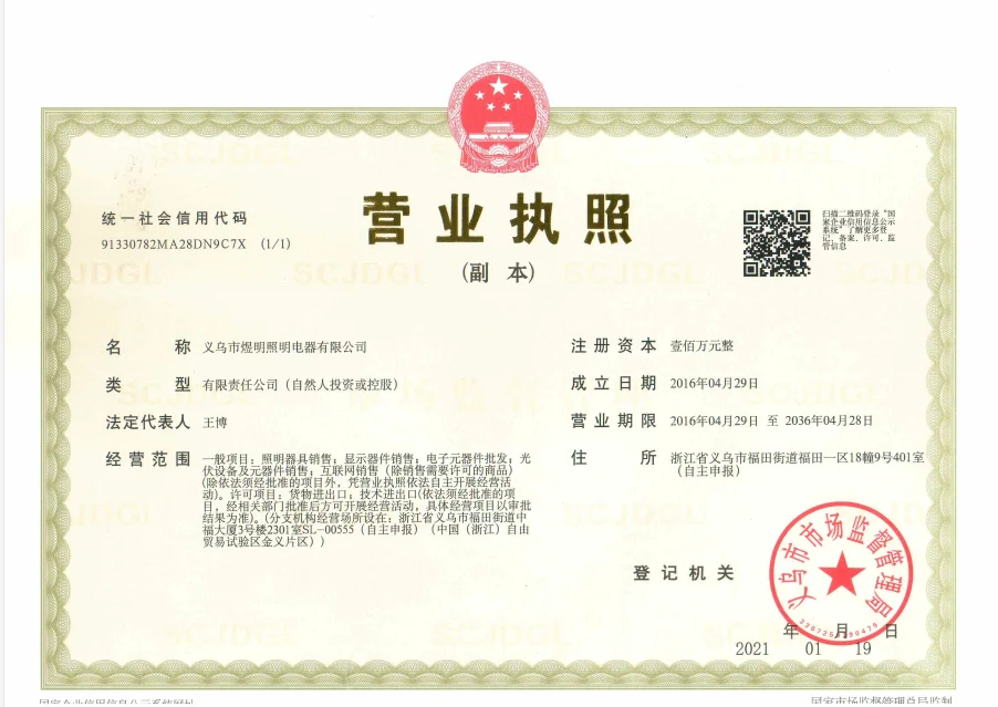 Company Name : Yiwu Yuming Lighting Appliance Co., Ltd.